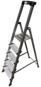 Стремянки этой серии оснащаются высокой дугой безопасности. Она позволяет удерживать равновесие, при размещении на рабочей площадке. Кстати, она достаточно просторная, со специальным покрытием против скольжения стопы. Эти важные элементы конструкции обеспечивают безопасное и комфортное положение при выполнении любых работ.