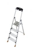 Стремянки этой серии оснащаются высокой дугой безопасности. Она позволяет удерживать равновесие, при размещении на рабочей площадке. Кстати, она достаточно просторная, со специальным покрытием против скольжения стопы. Эти важные элементы конструкции обеспечивают безопасное и комфортное положение при выполнении любых работ.