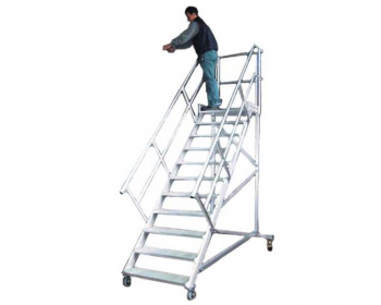 Передвижной трап с платформой выполнен из легкого сплава алюминия.